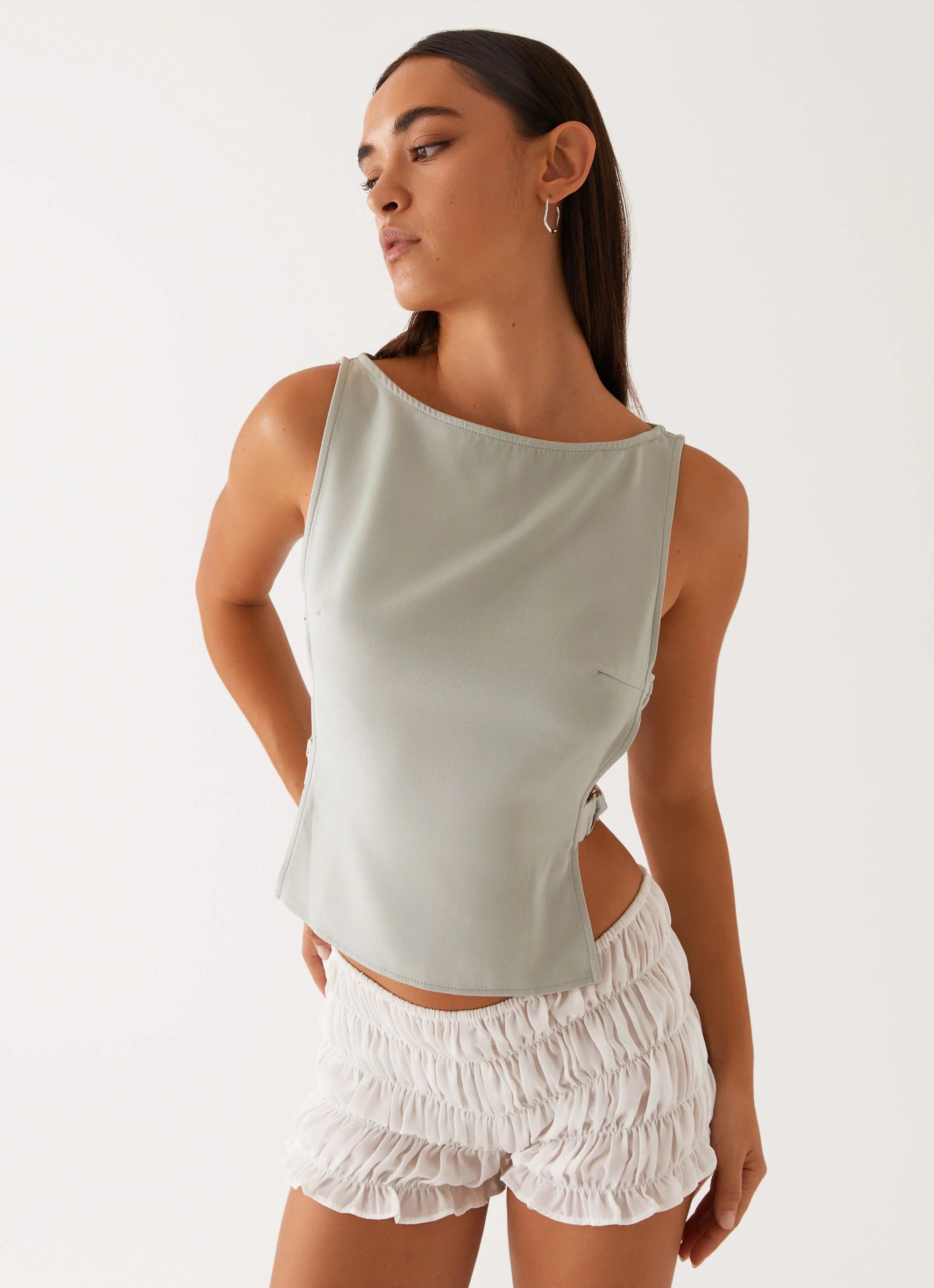 The Cherish You buckle top is a modern twist on classic elegance. With a rounded boat neckline and an open side detail, it exudes understated sophistication. Fully lined for comfort, this top is made for nights that call for bold moves and effortless style.