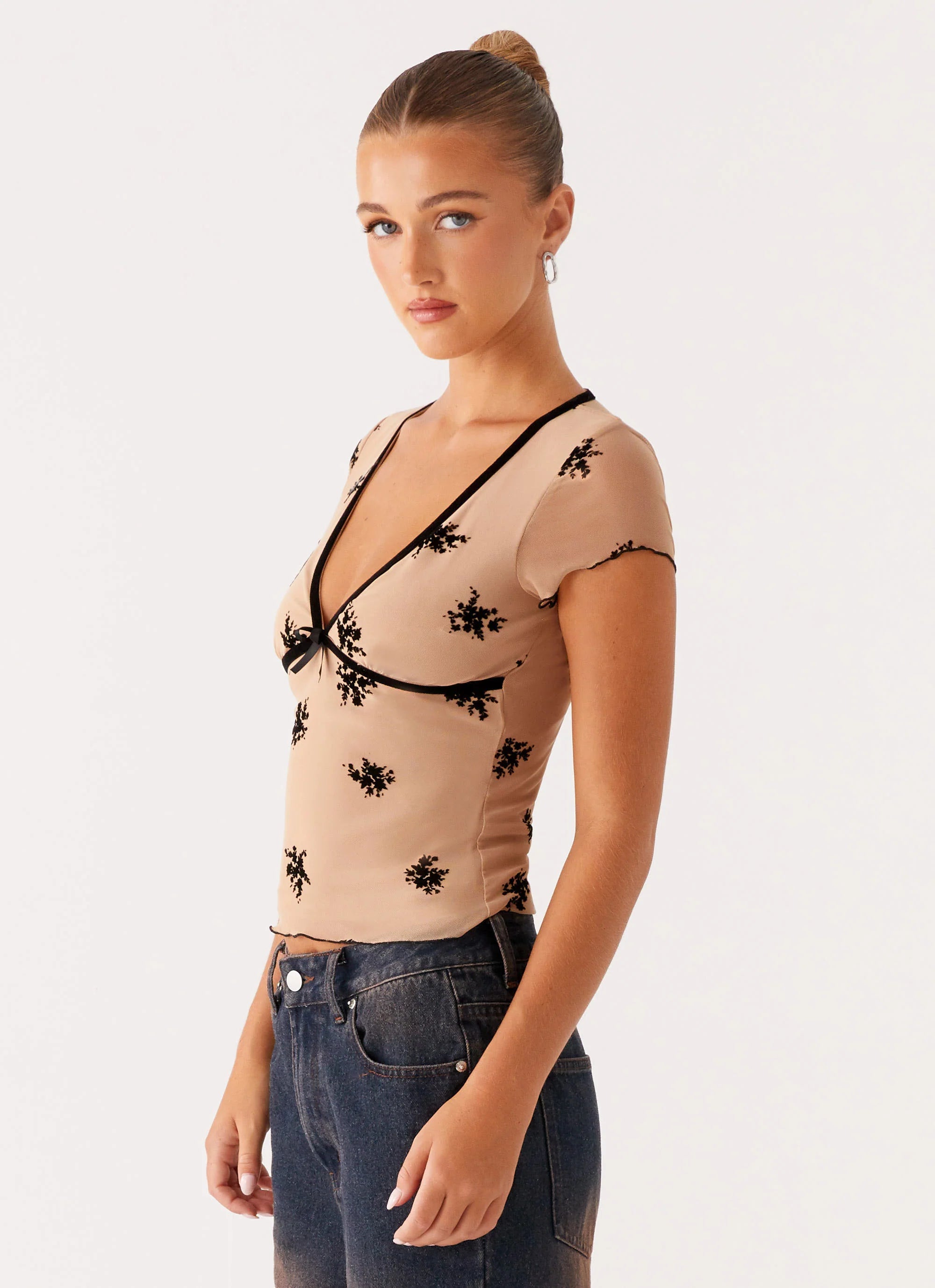 - Flower embroidery (embroidery placement will differ per garment)