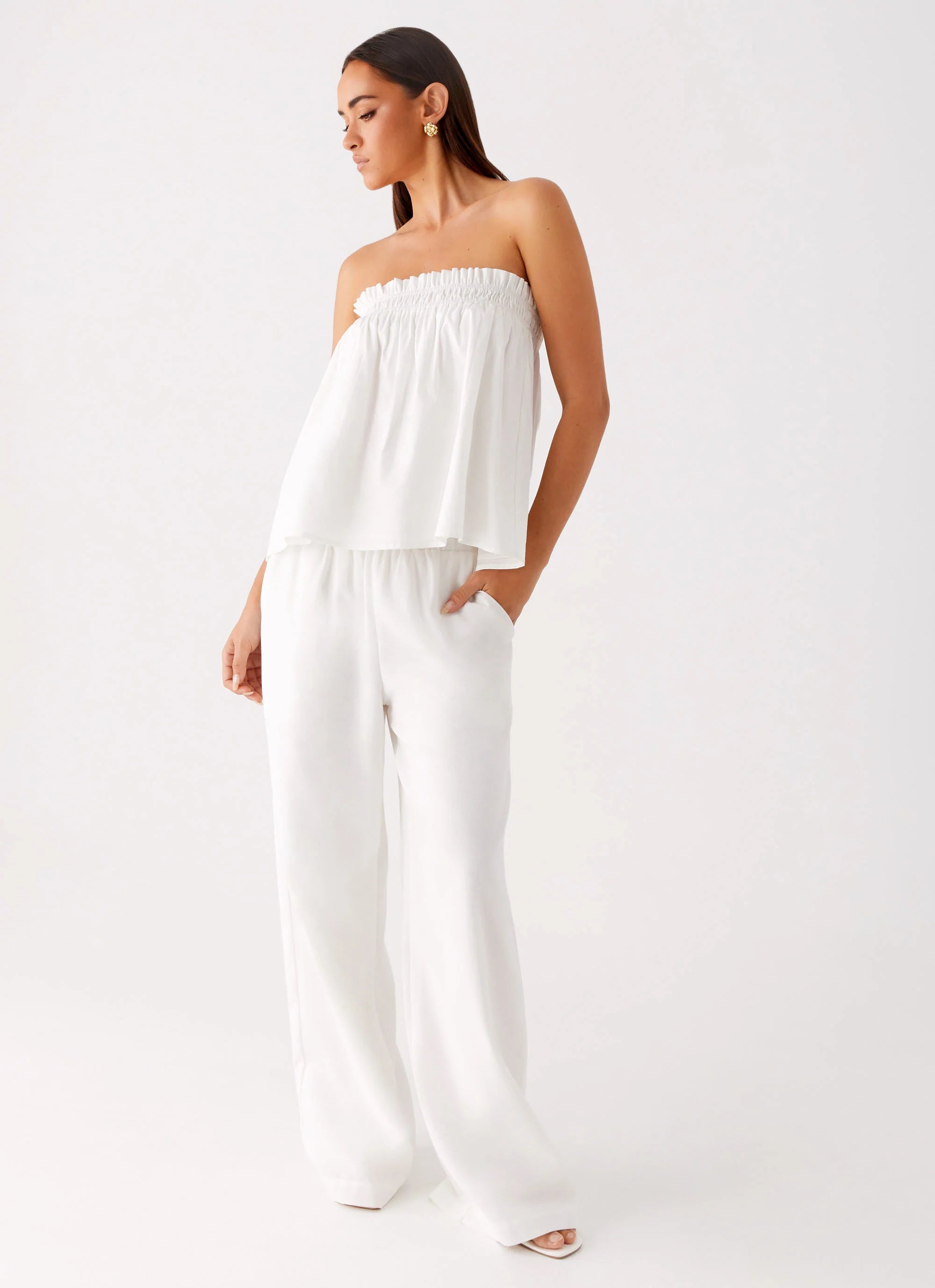 The Wynter Babydoll Top is flirty, free, and made for after-dark play. Featuring a strapless neckline and a flowy, flared fit, it's the perfect mix of effortless and statement-making.